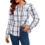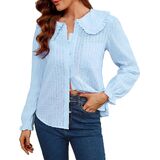 Sweet Vintage Details: Adorned with charming eyelet accents and subtle ruffle trim, this blouse offers a sweet, retro-chic vibe. The textured fabric and solid colors create a unique, elegant look that's cute without being overly fussy.