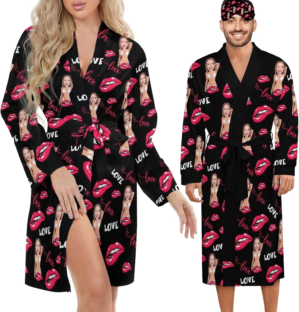 ❤️【Available in All Sizes】Our custom faces robe are available in a wide range of sizes to accommodate all body types. Knee-length photos bathrobes available in sizes S-XL. Calf-length unisex bathrobes with faces available in sizes S-L. Custom eye mask measures 8.1 inches long and 4.1 inches wide
