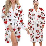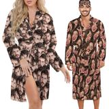 😄【Eye-catching Design】Funny custom robes for women men with photos/faces have hearts, pet paw prints. Custom pet pajamas are not only an expression of personality, but also a commemoration of memories