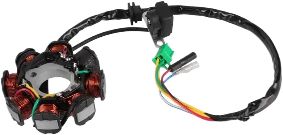 Magneto Ignition Stator 8 Coil 5 Wire designed to fit GY6 125cc 150cc 139QMB 139QMA 4-stroke engines.Compatible with various ATV, scooter, moped, go kart, dirt bike, and pit bike models.Provides ignition performance with an 8-coil configuration and 5-wire setup for consistent power delivery.Engineered for straightforward installation and in standard engine compartments.