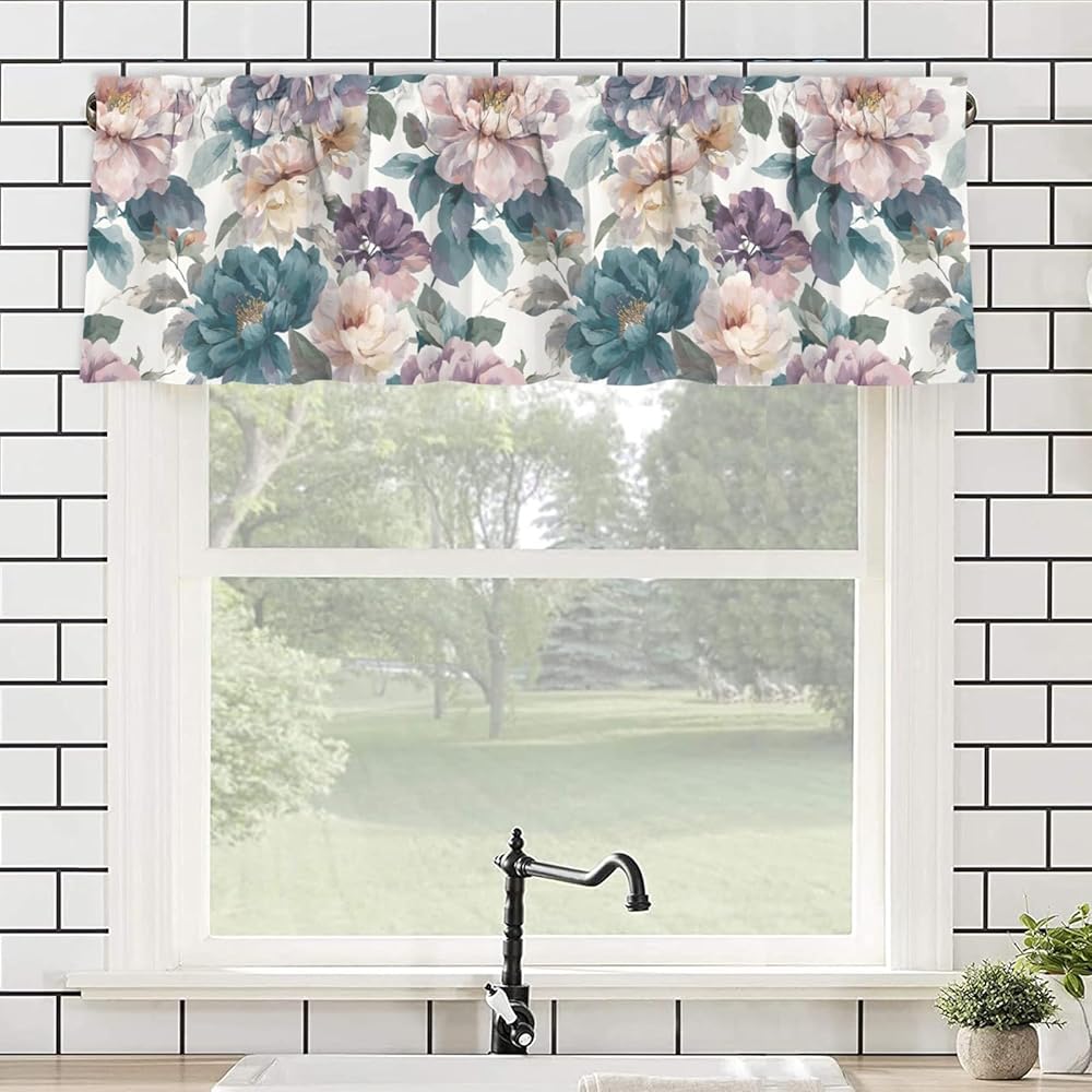 susiyo Vintage Mauve Floral Valance for Windows Printed Curtain Valance Rod Pocket Valance Window Treatment Valance 1 Panels Short Curtains for Kitchen Living Room Bathroom Farmhouse, 60 x 18 Inch