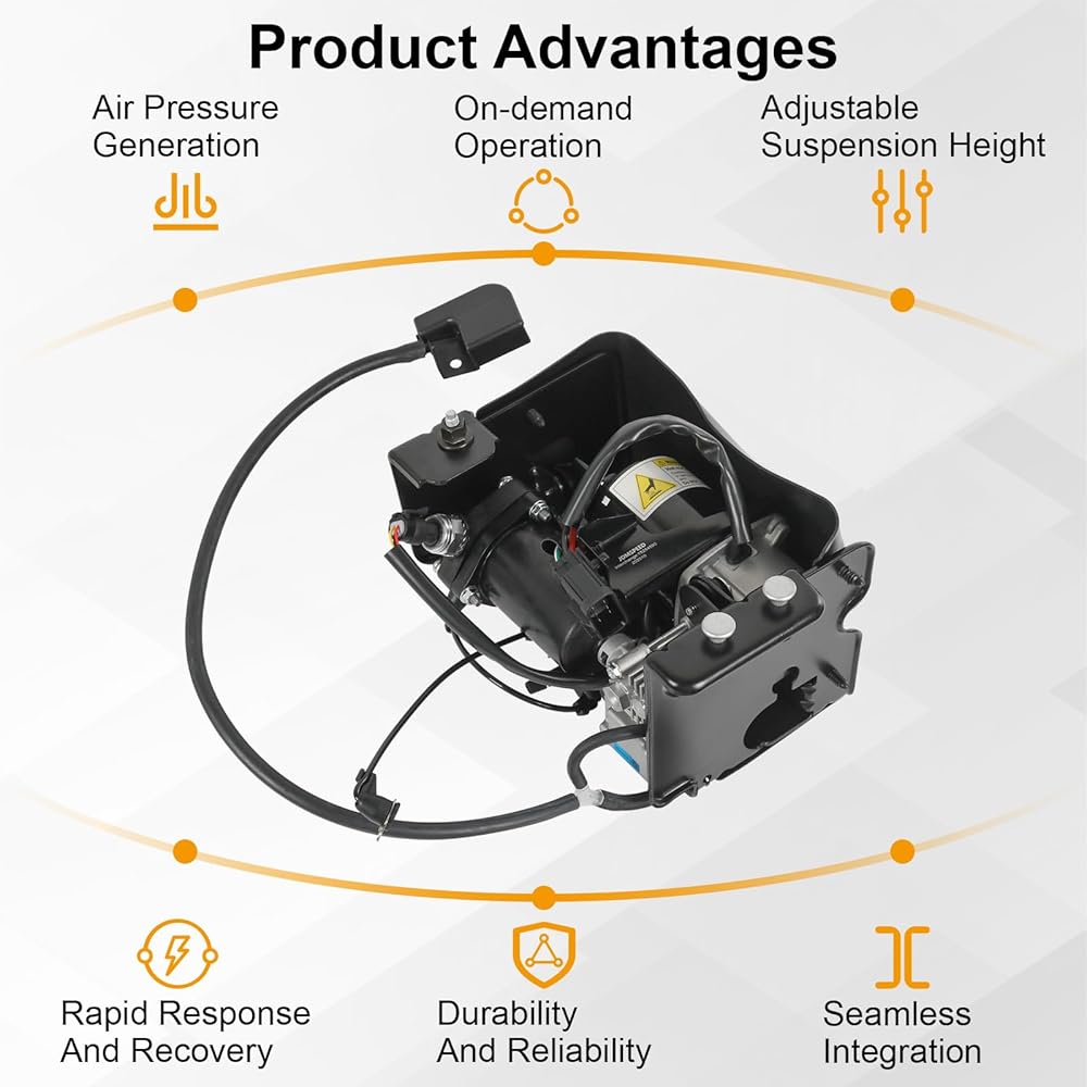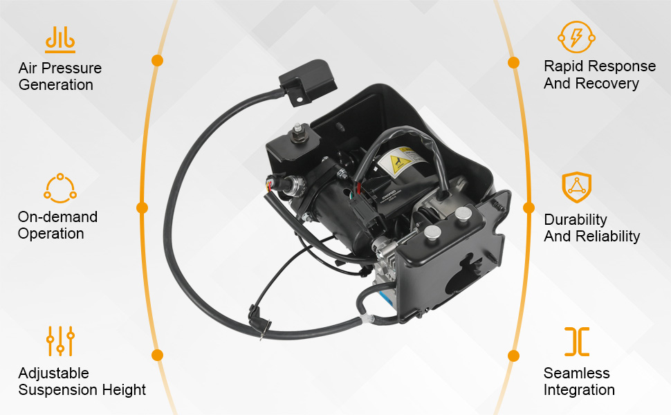 Functionality: As a critical component of the air suspension system, the air compressor employs premium materials and advanced technology to deliver dynamic elastic performance. This enhances ride comfort and stability during vehicle operation while maintaining optimal handling and safety.