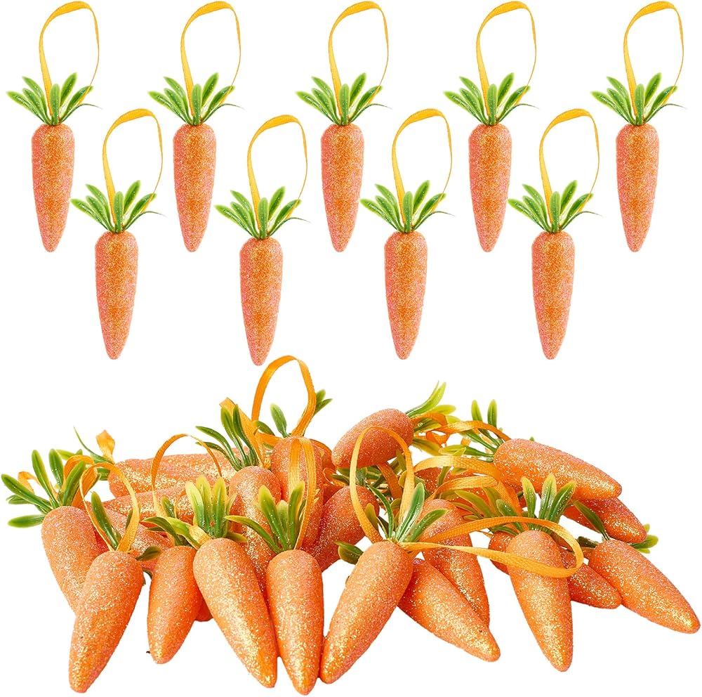 These 24 artificial glitter easter carrot decorations are crafted to transform spaces into lively Easter scenes with minimal effort.