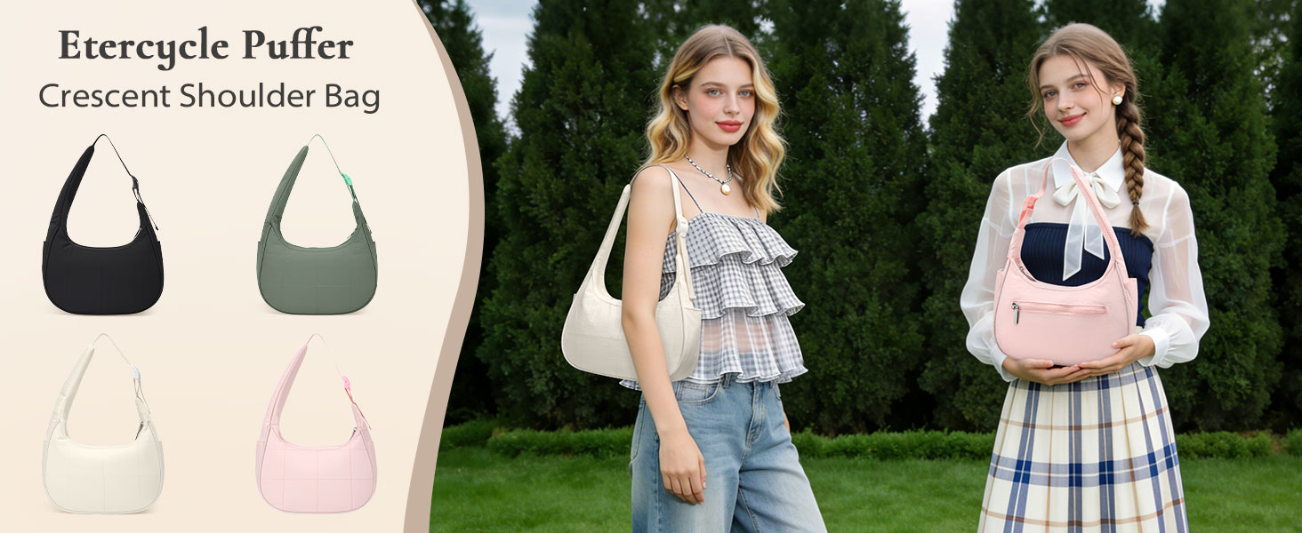 Adjustable Comfort: Etercycle's puffer bag is equipped with an adjustable shoulder strap, which can be adjusted to your own needs to fit the length of your carry, and it is not easy to feel tired after long time use.Women's shoulder handbags measures L 10.3‘ x H 6.4' x W 4.1', weighs 0.44 lbs, making it easy to carry