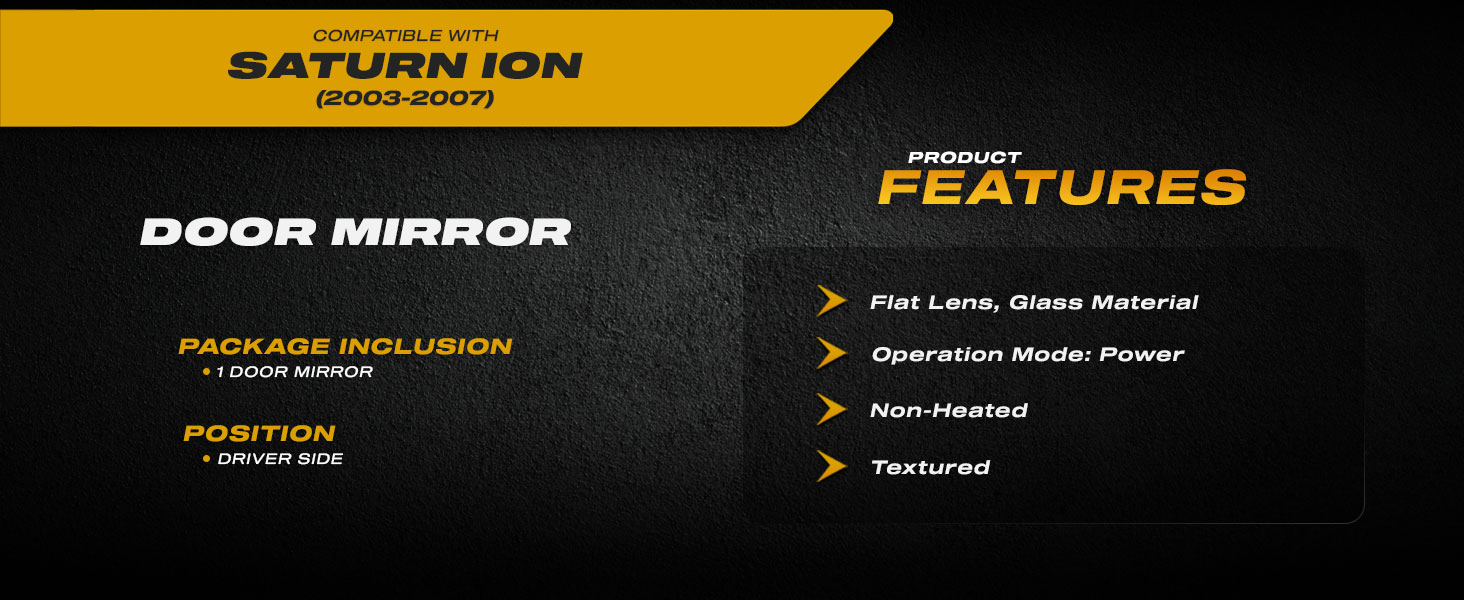 For Saturn Ion 2003 2004 2005 2006 2007 Door Mirror Driver Side | Power | Non-Heated | Textured | Sedan | Replacement For 22726680 | GM1320267