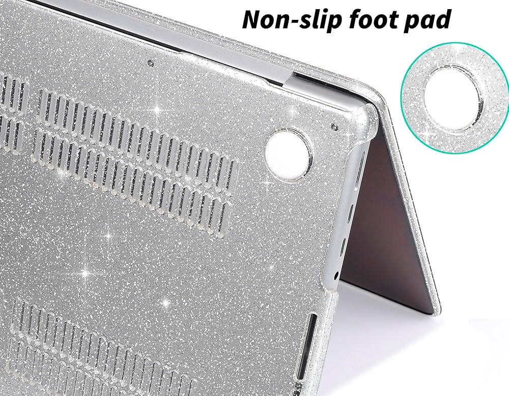 This case is made of high quality polycarbonate. Case give your MacBook a glossy sparkling crystal finish that easily slips in and out your bag while retaining a grippy edge for your peace of mind.The slim design of the cases make it easy to carry inside your bags,or briefcase. Therefore, our cover does not add lots of bulk neither change original shape of the MacBook.