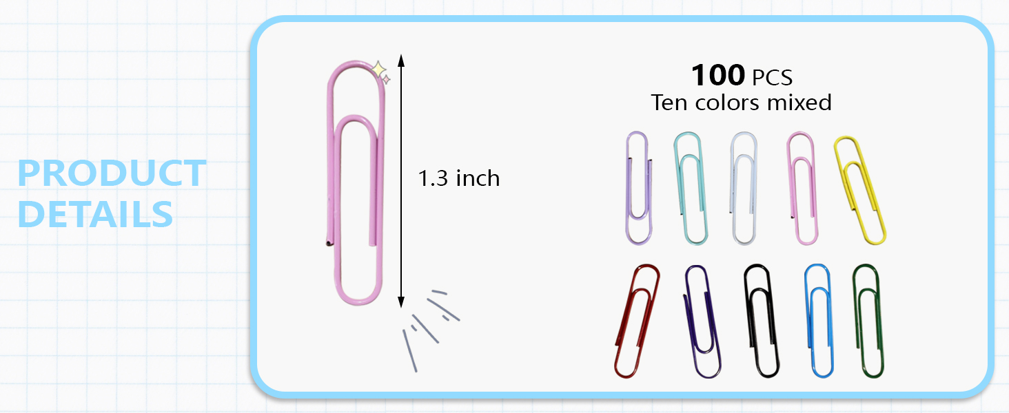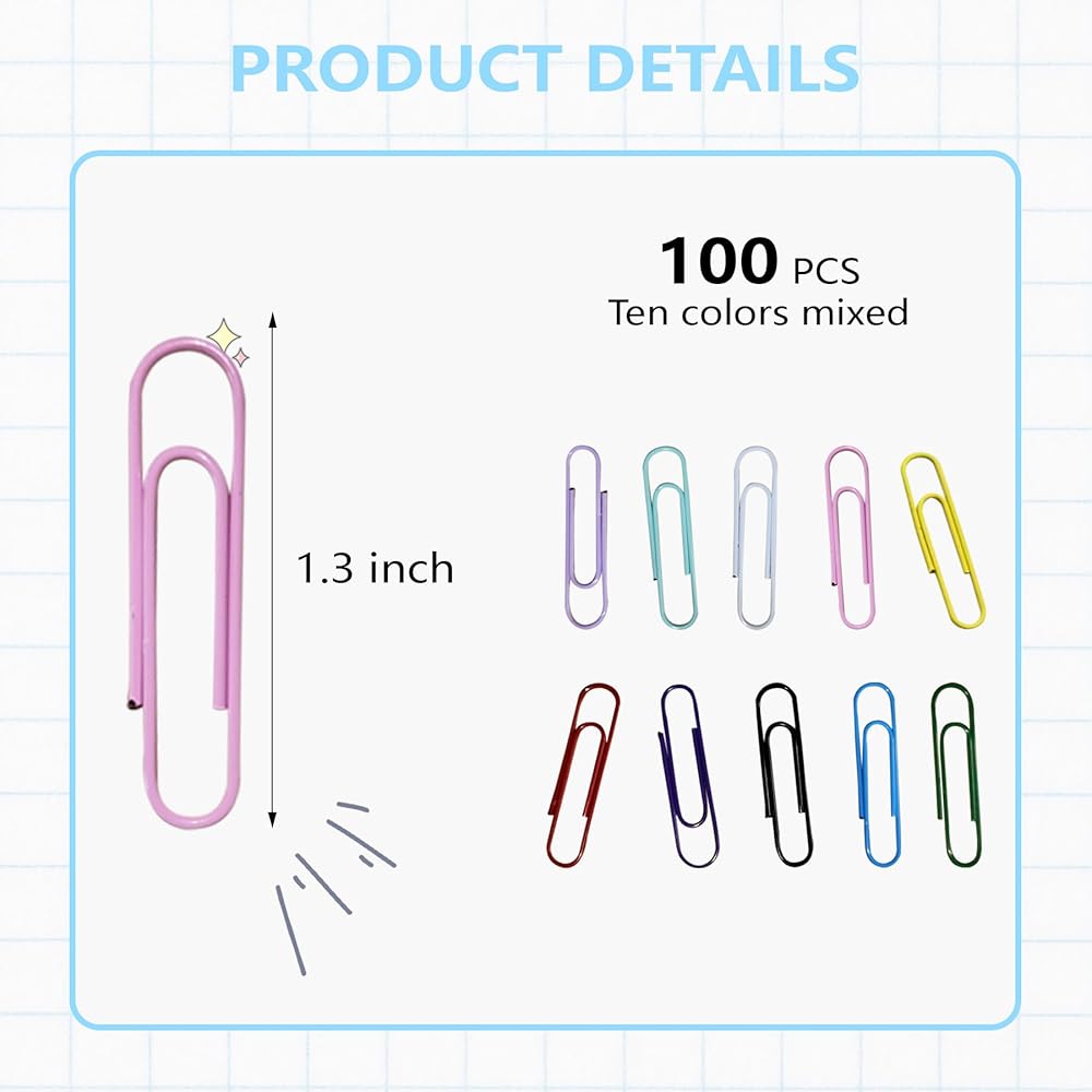 Paper Clips, 100-PCS PaperClips Assorted Sizes, 8 Colored Paper Clips Medium, Binder Clips Paperclips Assorted Sizes Set for Home School Office Supplies (100, Medium)