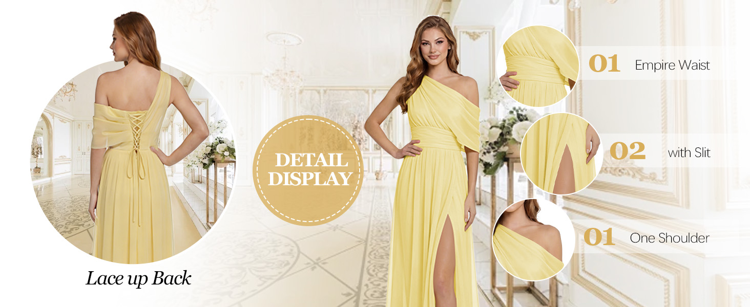 Fabric:The dress is made of high-density chiffon with a cloud-soft feel, this gown drapes beautifully, letting the skirt sway fluidly with every step. It follows your curves without clinging, flattering your waist, abdomen, and legs for an elegant, ethereal look.