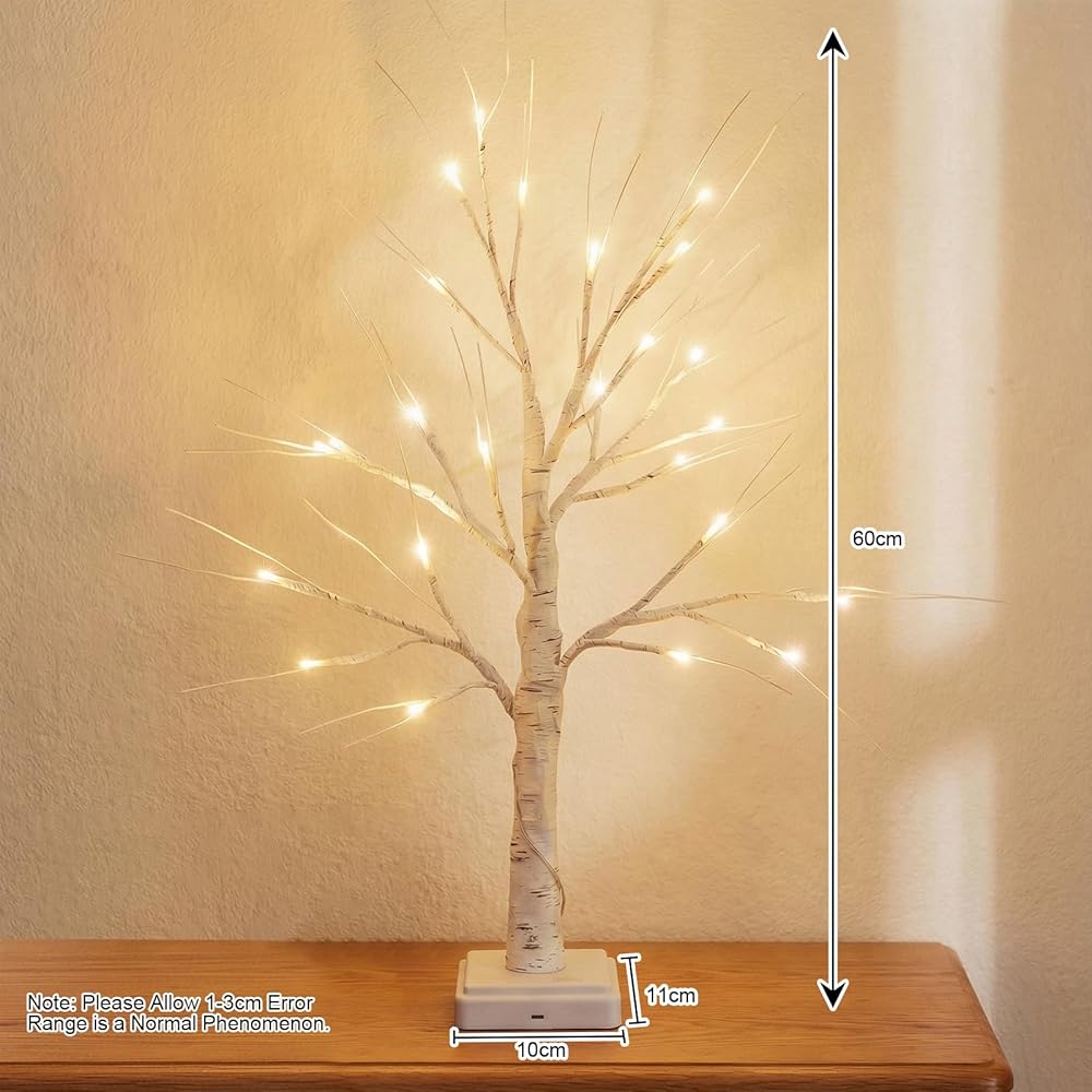 Warm & Cozy Ramadan Lights: The twinkling tree's soft LED fairy lights for bedroom (with ON/OFF switch) create a gentle, festive glow — ideal for lighted trees for indoor decor in living rooms, dining tables, or ramadan decoration gatherings. Durable white birch tree with lights design looks elegant in any Islamic home decor space.