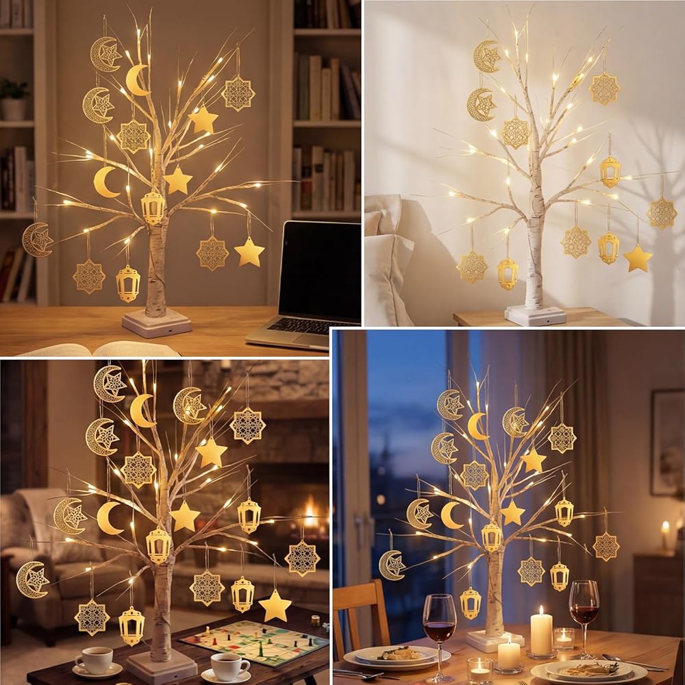 Versatile Light Up Tree for Any Occasion: This lighted birch trees for indoor decor works for Ramadan Mubarak, Eid decorations, or Islamic housewarming parties. Use the tree lamp alone as decor, or mix ornaments with other Islamic decor — it's even great as Eid gifts!