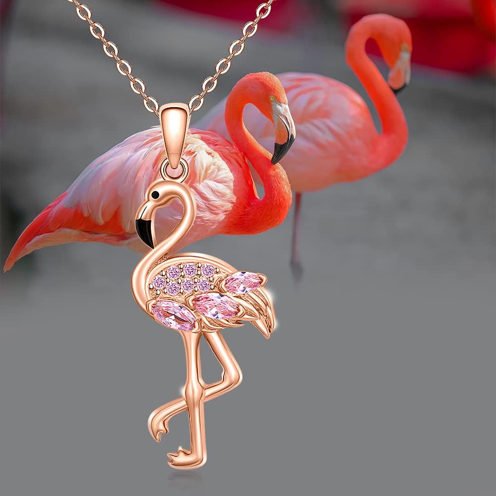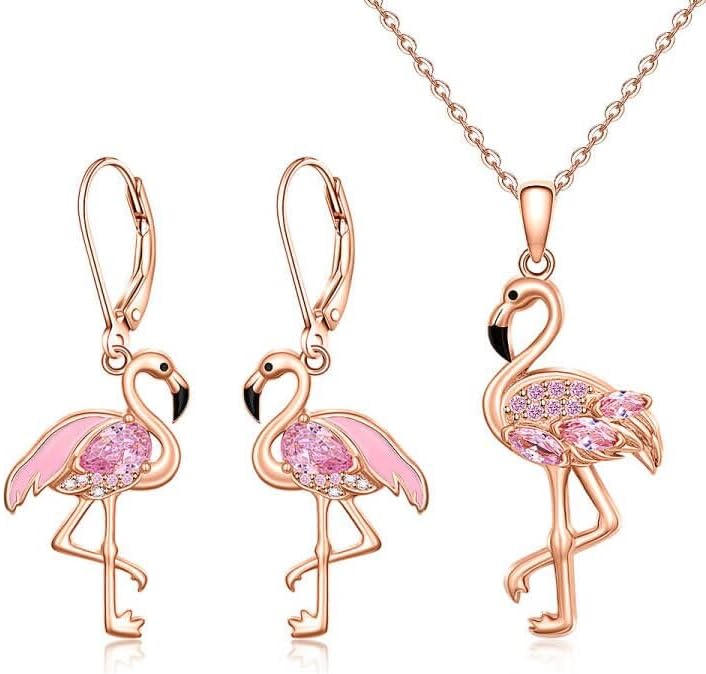 Flamingo Earrings Necklace Set for Women Flamingo Dangle Earrings Christmas Sterling Silver Leverback Flamingos Jewelry X Mas Gifts