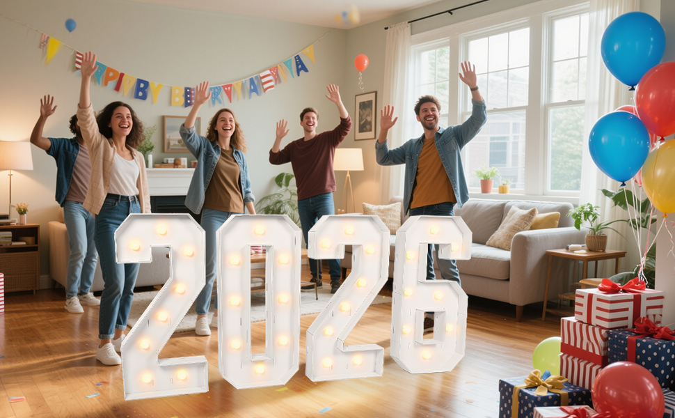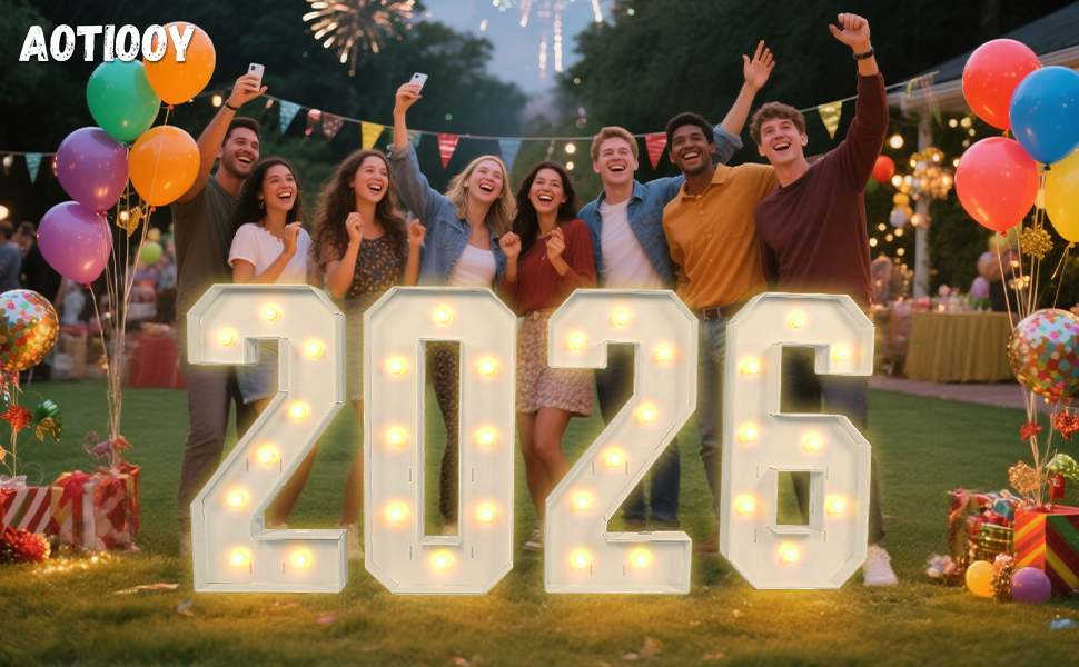 Warm & Eye-Catching LED Glow: Command attention with a stunning visual impact! Featuring energy-efficient, bright LED lights, this 3 ft tall light up marquee numbers sign ensures your "2026" shines vividly day and night. The warm and inviting glow creates the perfect ambiance for photos and memories, making your celebration the talk of the town.