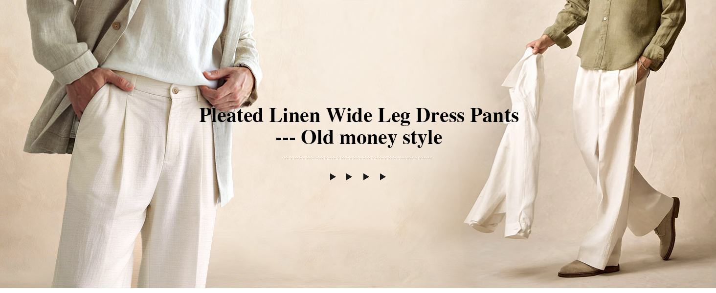 Comdecevis Men's Linen Pleated Pants Lightweight Loose Fit Business Casual Linen Dress Trousers Applicable for:Men Color:Off White,Pure White,Black,Khaki,Beige Size:32,34,36,38,40,42 Fabric type:47%Lyocell,30%Rayon,15%Linen,8%Nylon Applicable Season:Spring,Summer Applicable Occasion:It can be paired with linen shirts, t-shirts, button-down shirts, Hawaiian shirts, etc., combining casual and business attributes, and is suitable for a variety of occasions such as leisure, home, going out, weddings, parties, dates, offices, meetings and business. Product Features:There are two deep pockets on both sides and two buttoned pocket at the back, which can hold your daily necessities. These baggy pleated dress pants are designed with an elastic waistband for a better fit. The belt loop fits your waistline and can be used with a belt. Match:It can be paired with linen shirts, t-shirts, button-down shirts, Hawaiian shirts, etc., combining casual and business attributes. Comfortable Material:Made of moisture-wicking and breathable linen blend fabric, the fabric is environmentally friendly and durable, cool to the touch, skin-friendly and soft. Wear these lightweight men's dress pants to stay cool and comfortable all day long. Fit design:These men's pleated dress pants have a loose fit, providing more room in the thigh and hip areas, making them a comfortable choice for men with a strong or larger build. Multiple occasions:Suitable for any occasion, such as leisure, home, going out, weddings, parties, dates, offices, meetings, business, beach, vacation or everyday wear. These will become indispensable fashion items in your summer wardrobe. Tag:#linen pants men#mens pants#mens dress pants#pants for men#pantalones de hombre#mens casual pants#baggy pants men#pantalones de vestir para hombres#slacks for men#mens lightweight pants#business casual pants#summer pants for men#beach pants for men#