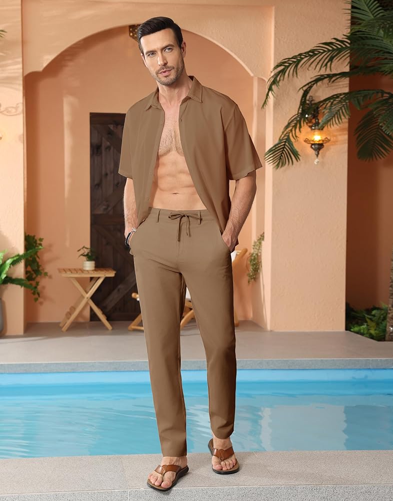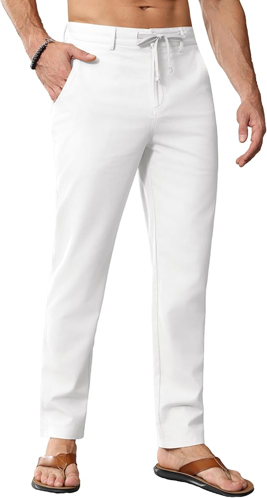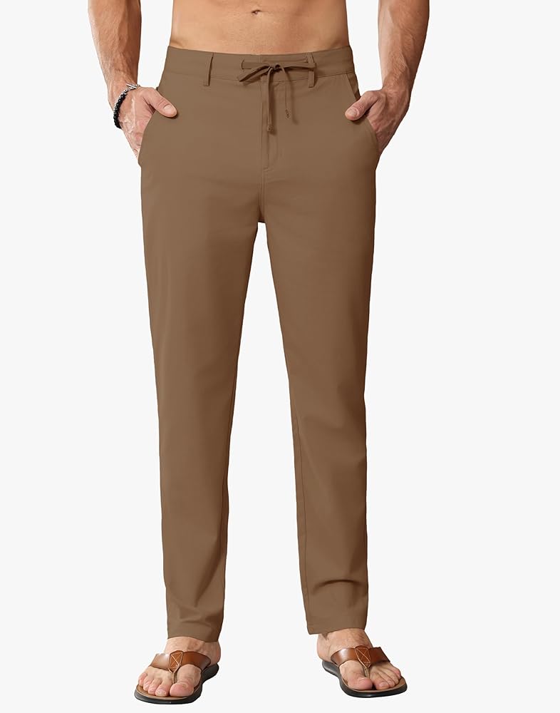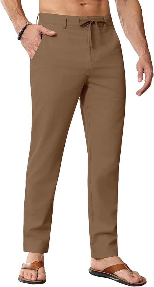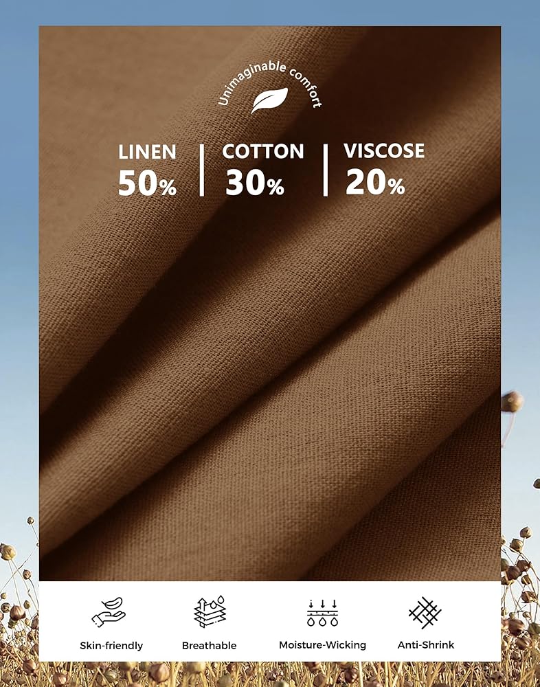【نسيج كتان قطني بنسبة 50%】مصنوع من نسيج القطن والكتان عالي الجودة، بما في ذلك 20% بوليستر، سراويل الكتان ثلاثية الأبعاد ومقاومة للتجاعيد وممتصة للرطوبة، مما يمنحك تجربة ارتداء مريحة ومنعشة.