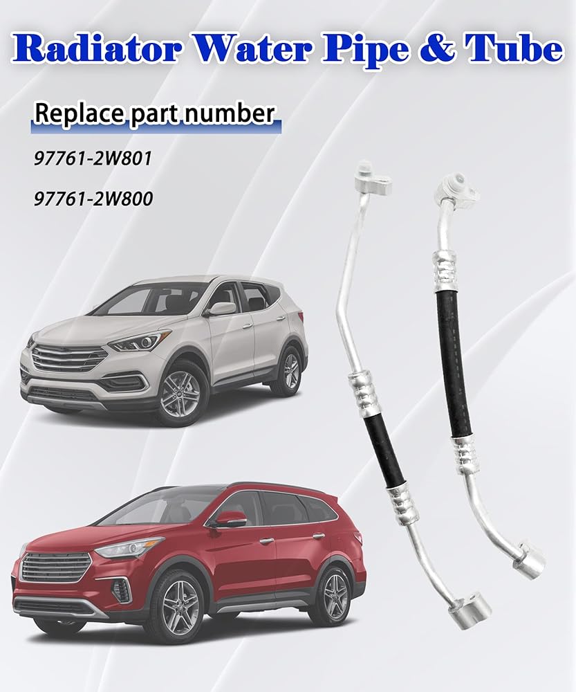 Radiator Water Pipe & Tube 97761-2W801 97761-2W800 Compatible With 2013-2018 Hyundai Santa Fe 2019 Hyundai Santa Fe XL,A/C Refrigerant Discharge Hose Replacement 977612W801 977612W800