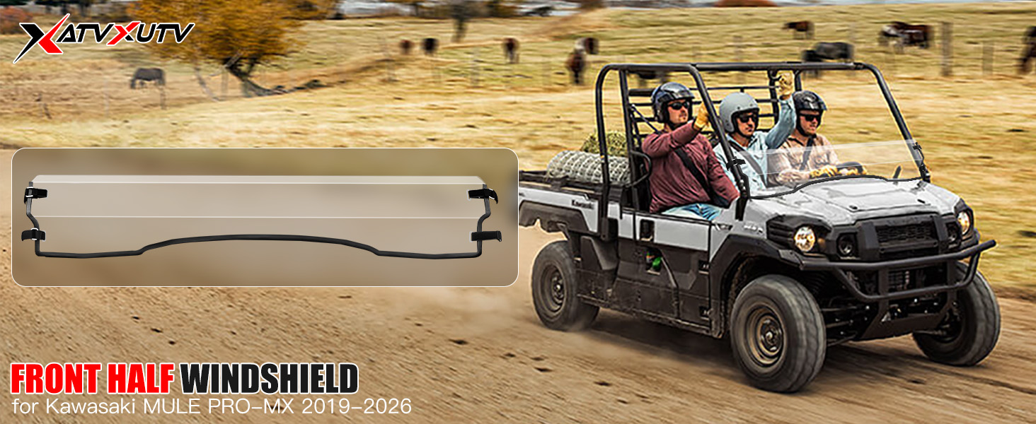 [Perfect Compatibility] XATVXUTV front half windshield for Kawasaki Mule Pro MX 2021-2022 / for MULE PRO-MX (EPS) 2019-2023 / for MULE PRO-MX (EPS) LE 2019-2023 / for MULE PRO-MX CAMO (EPS) 2019-2023 / for MULE PRO-MX EPS 2024-2026 / for MULE PRO-MX EPS Camo 2024-2026 / for MULE PRO-MX LE 2024-2026 / for MULE PRO-MX SE 2022-2026 enhancing off-road features and style. Please refer to the detailed compatibility list in the description