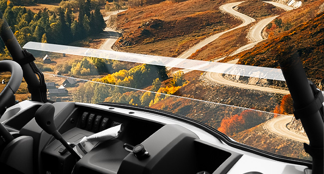 [Resistance Strip] XATVXUTV front windshield features reinforced rubber seals along the base that not only absorbs shock and vibration for enhanced durability, but also reduces wind and noise to ensure a smoother, quieter ride. The thickened edge protects your hood from scratches while also prevents dust, water, and dirt from entering, making it ideal for all-season off-roading