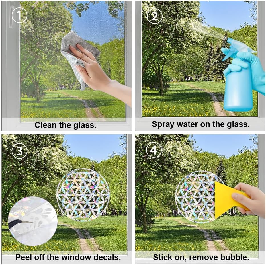 These anti-collision window decals will reflect different colors when light bounces off them, shiny rainbow color will provide you a good visual effects.