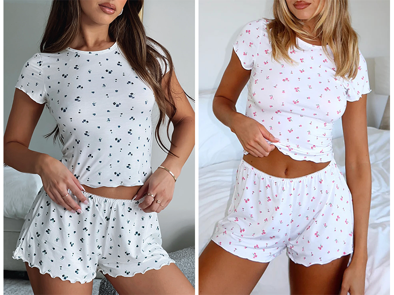 🌸Material: Womens summer cute pajama set is made of knitted fabric. Soft, lightweight, breathable, stretchy, skin friendly, comfy to wear. Dressmine casual two piece set is an essential item for every woman in the summer.