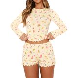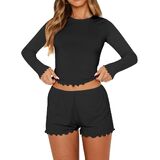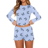 🌸Features: Thanks to the pattern and slim fitted design, casual two piece set can be easily paired up and down. 2026 Casual long sleeve pjs set is casual and sexy, even in the hot summer without feeling hot, allowing you to enjoy comfort and beauty.