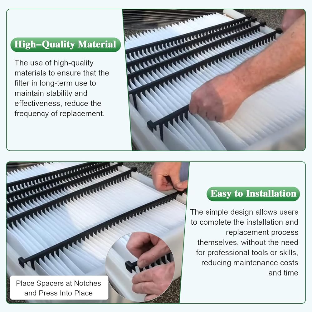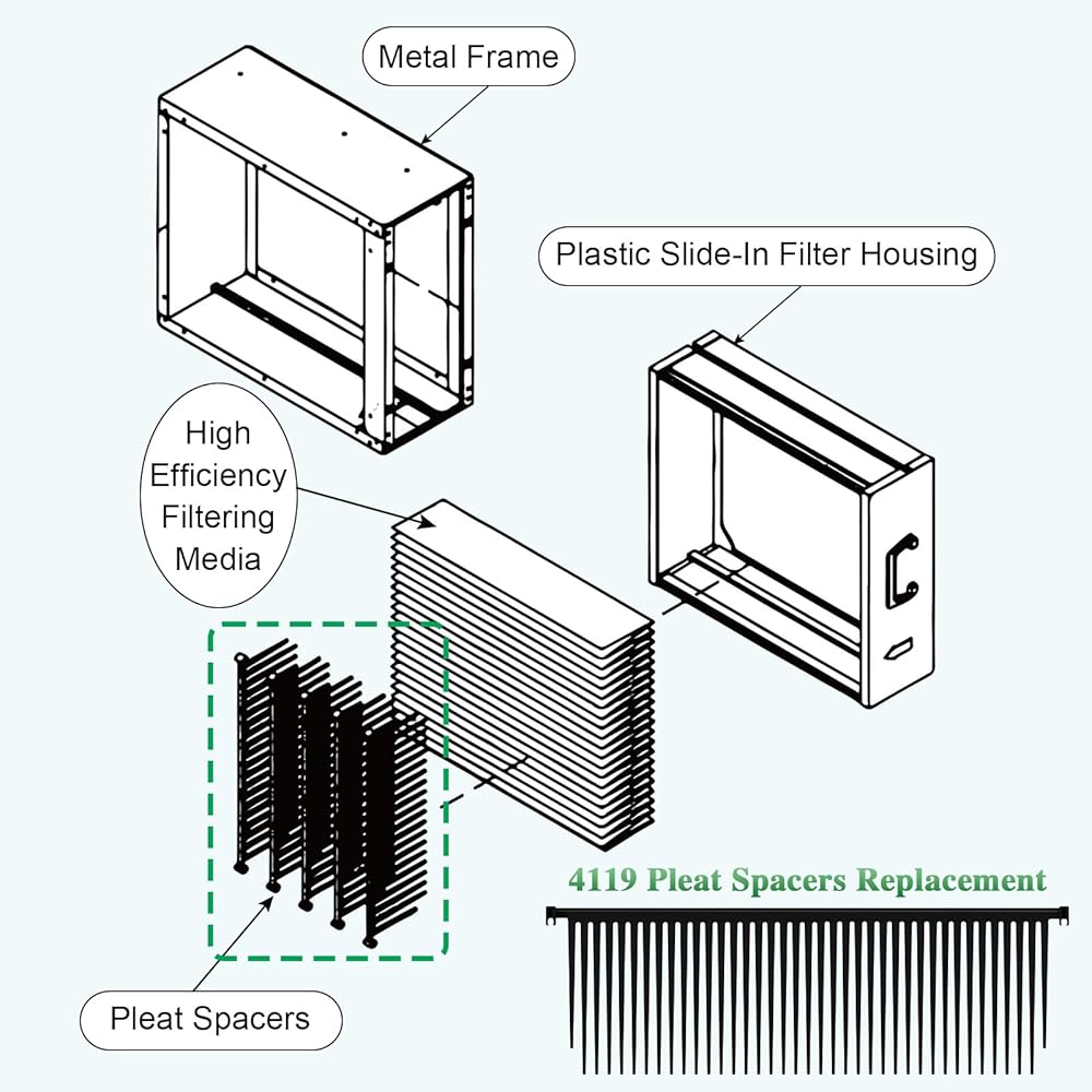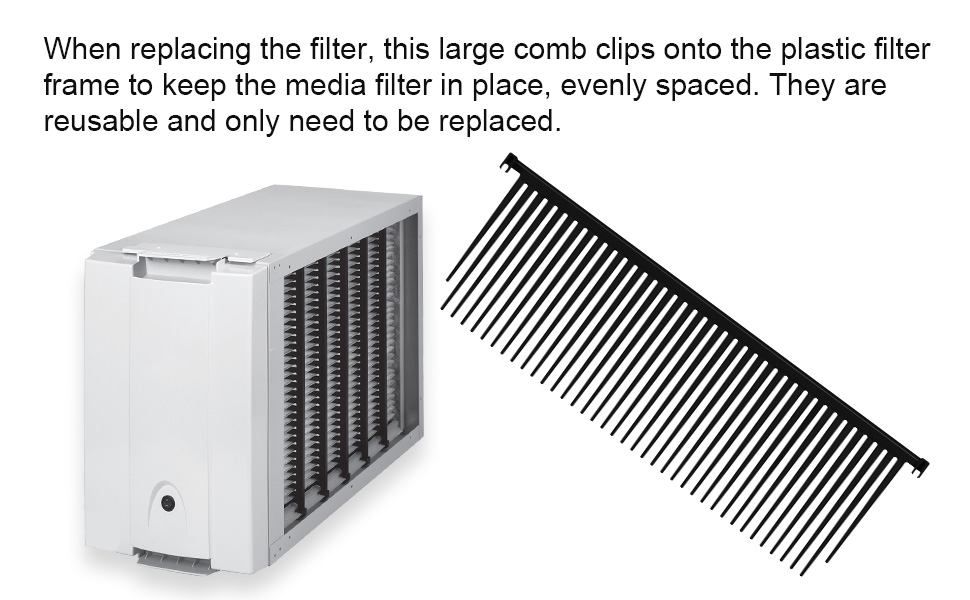 Easy to install: When the filter is replaced, these 6 large combs clip to the plastic filter frame to hold the media filter in place, evenly spaced. They are reusable and only need to be replaced if lost or damaged.