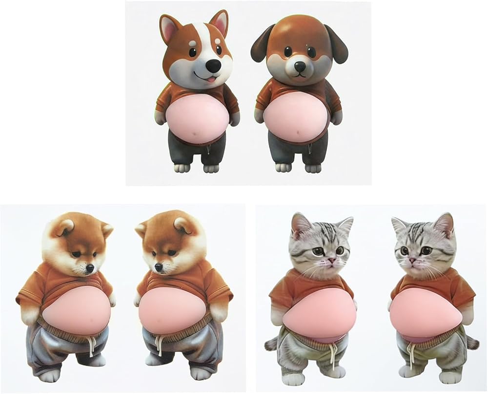 Charming and Adorable Designs: The set includes a pair of cats, a pair of Shiba Inus, and a pair of illustrative dogs, each wearing an orange garment. The delightful and adorable designs add a touch of personality and charm to any space, making them a delightful addition to your home or office.