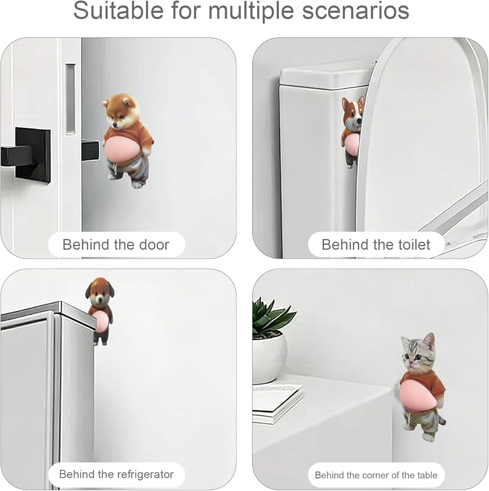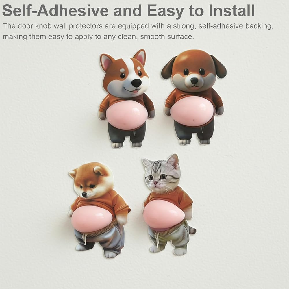 Decorative and Functional: These self-adhesive door bumper guards come in a set of 6, featuring charming designs of cats, Shiba Inus, and illustrative dogs. Each design is both decorative and functional, providing a personality and practical solution to safeguard your walls and doors.