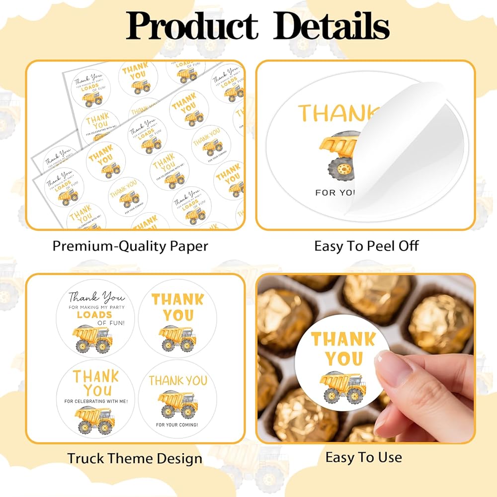 Versatile & Easy to Use: Suitable for labeling goodie bags, sealing invitations, or as decorative accents—makes expressing thanks in construction-themed events effortless and engaging.
