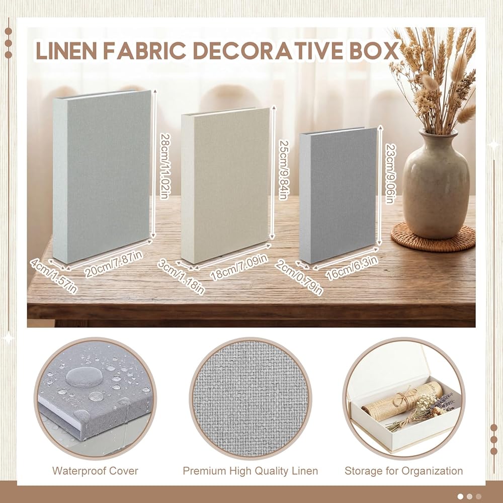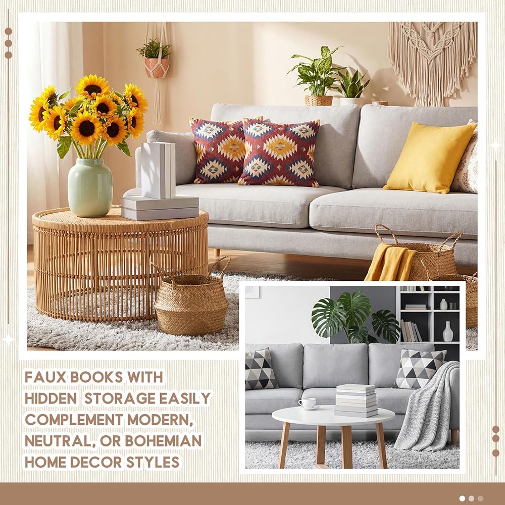 Three sizes of faux books can be stacked vertically or placed horizontally, and can be freely combined and styled on desktop, bookshelf, or coffee table. No need to assemble, ready to use right out of the box, upgrading the ambience of the corner in 5 seconds