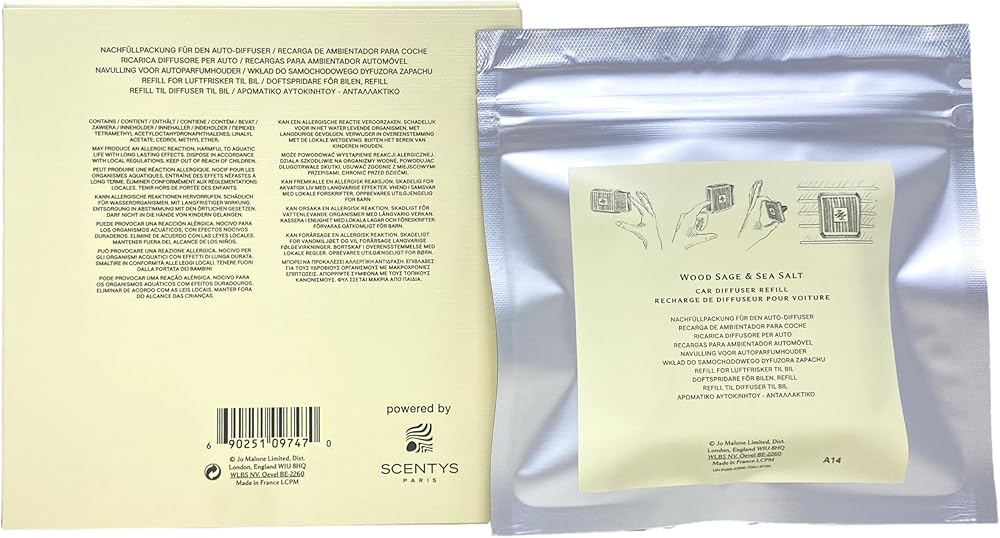 Start the car with the fresh fragrance of Wood Sage & Sea Salt. Created for use in Jo Malone's Car Diffuser, this Refill offers continuous scent in a smart and stylish design to enhance your journey.