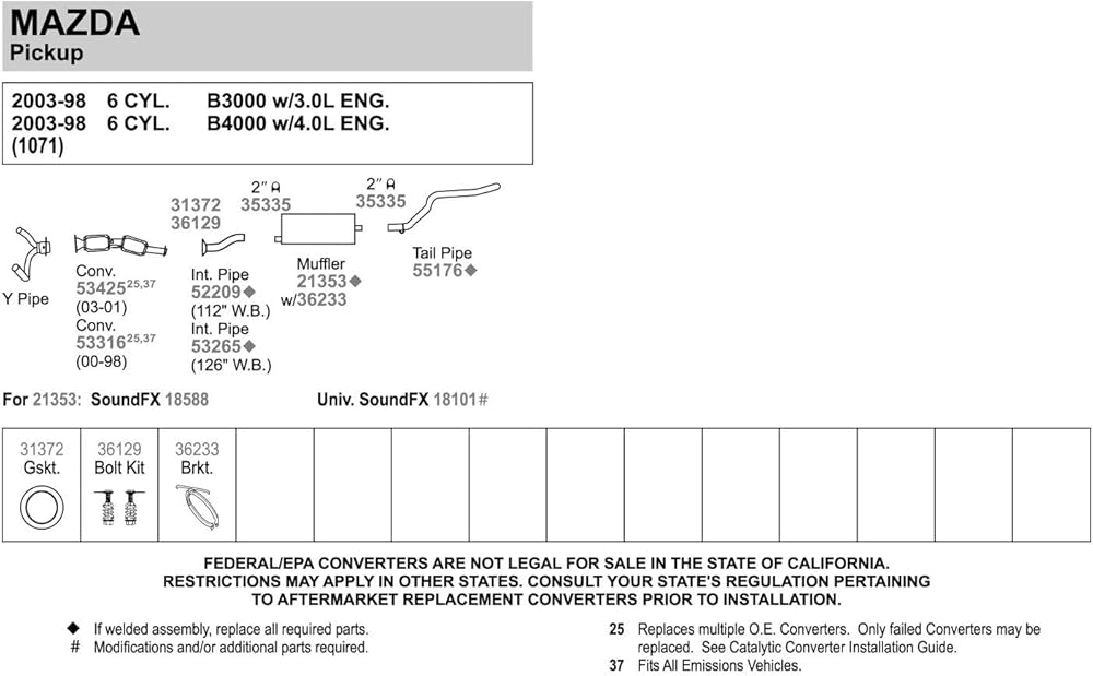 COMPATIBILITY – Fits 1998-1998 Ford Ranger; 1999-1999 Ford Ranger; 2000-2000 Ford Ranger; 2001-2001 Ford Ranger; 2002-2002 Ford Ranger; 2003-2003 Ford Ranger; 2001-2001 Mazda B2300; 2002-2002 Mazda B2300; 2003-2003 Mazda B2300; 2004-2004 Mazda B2300; 1998