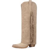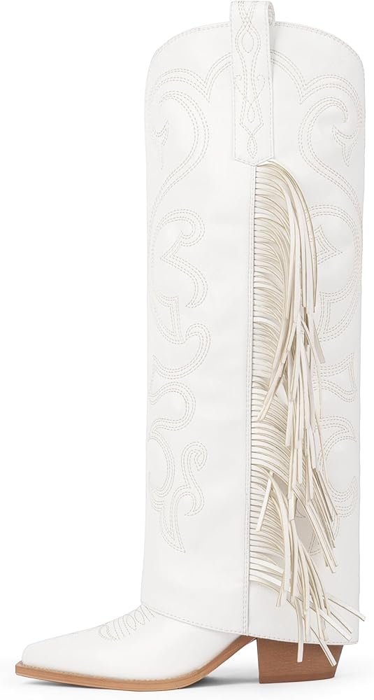 - Knee high cowgirl boots have a wide calf and side zipper that you can wear easily,ideal for elevating your stature and style.