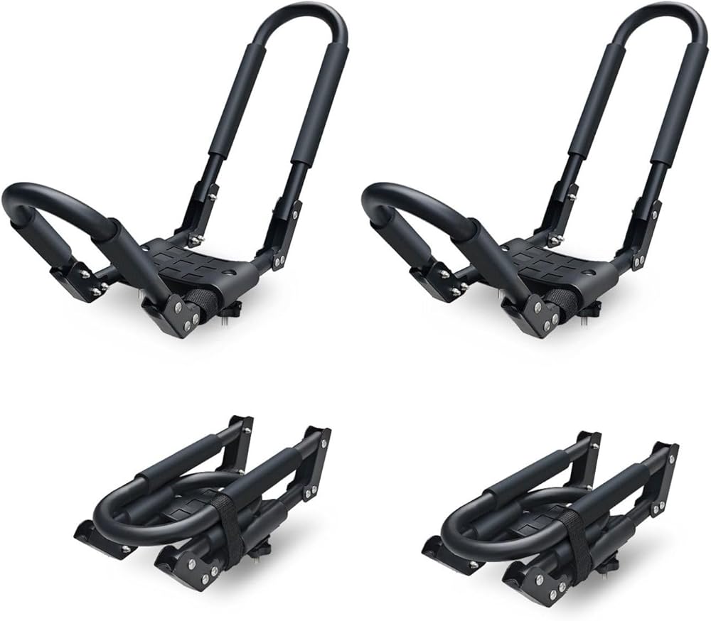 🚣HEAVY DUTY CONSTRUCTION: Built with durable materials to support up to 150 pounds, this J-bar carrier provides reliable strength and stability for transporting your watercraft and outdoor equipment safely on long trips. The compact folding mechanism allows the rack to collapse into a minimal footprint, making it convenient to store in your garage, basement, or vehicle when not actively transporting kayaks or other gear
