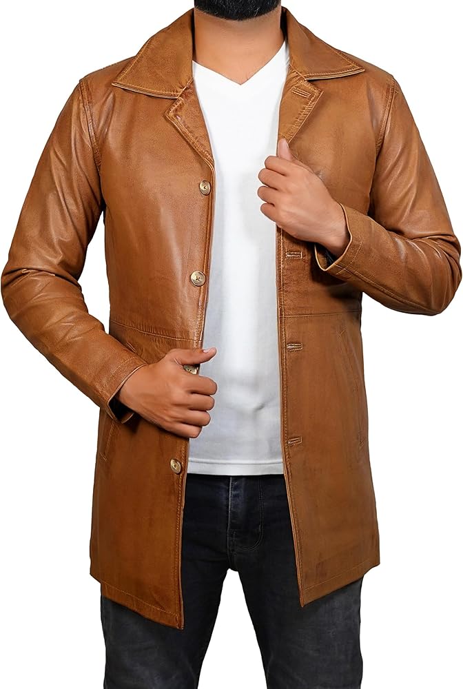 - Please Refer to Our Size Chart Image to Find Your Real Size | Distressed Brown Leather Coat Men
