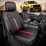 【Faux Leather with Carbon Fiber Texture Design】These F-150 front seat covers are made from premium faux leather, providing a long-lasting and protective layer for your truck seats. The carbon fiber texture on the sides adds a modern, high-end appearance while enhancing the interior style of your F150. Designed for a precise fit, these seat covers safeguard your original seats from wear, spills, and stains while maintaining comfort and premium look