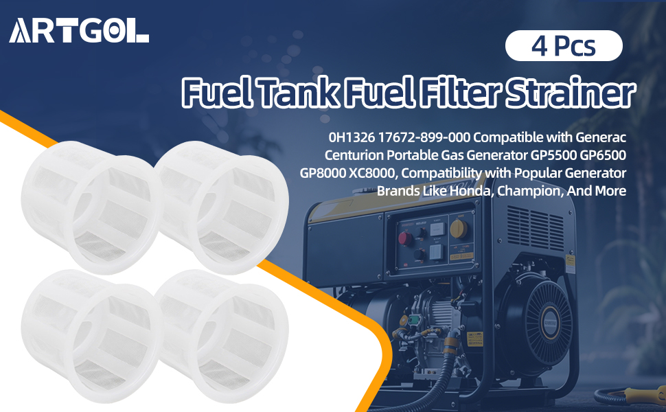 4 Pcs Fuel Tank Fuel Filter Strainer 0H1326 17672-899-000 Compatible with Generac Centurion Portable Gas Generator GP5500, Compatibility with Popular Generator Brands Like Honda, Champion, And More