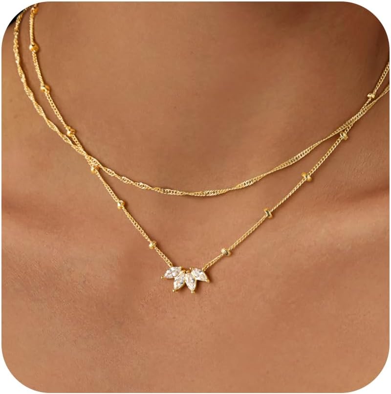 14K Gold Plated Necklace: Made of high-quality 14K gold-plated copper and dainty Cubic Zirconia.Gentle on skin, comfortable and lightweight, exceptional value for money.