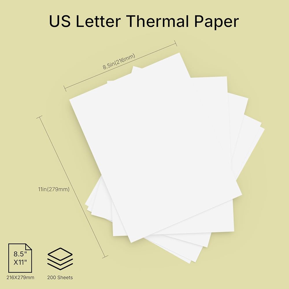 Rongta Thermal Printer Paper 8.5''x11'' US Letter Size, Thermal Paper Roll and Single Sheet, Advanced Clear Printing, Compatible with Other Thermal Printers (200 sheets)