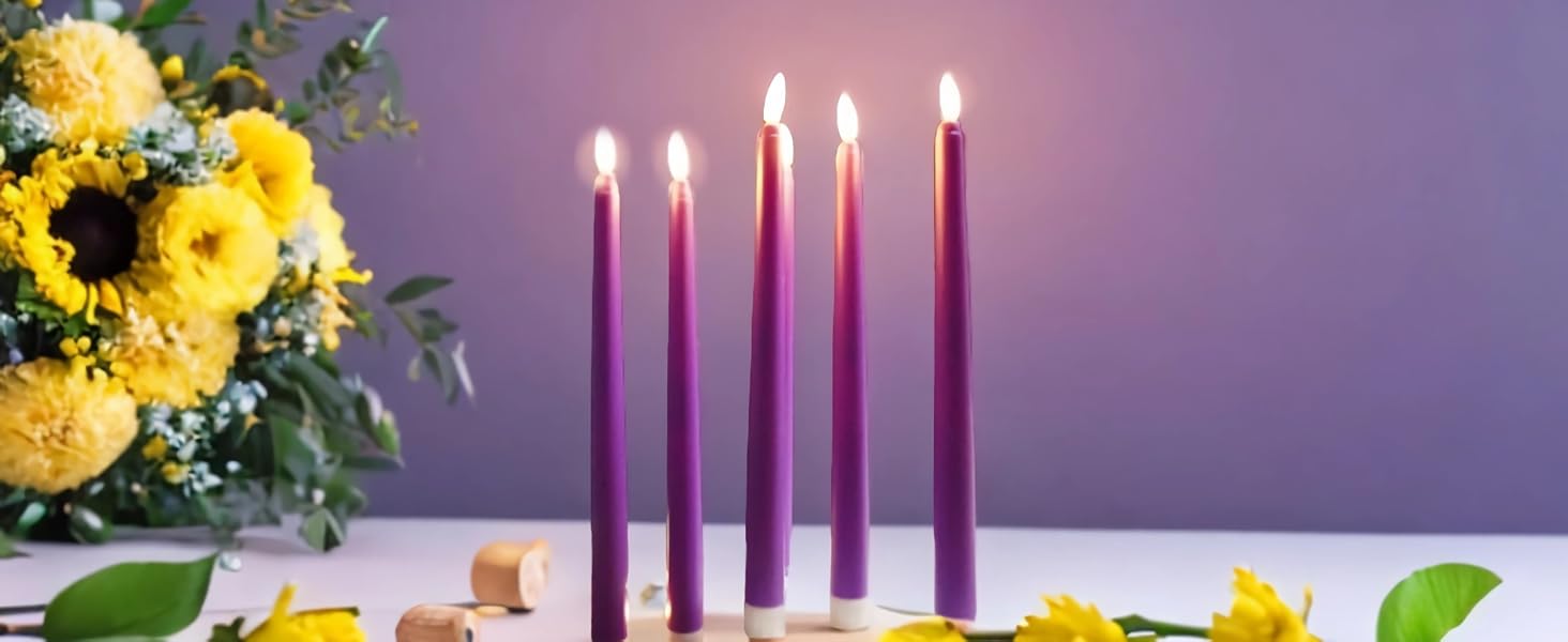 Versatile Application: Package includes 6 pieces purple led taper candles, 1 remote controller, perfect to dress up everyday tables,seasonal festive holidays, romantic wedding centerpieces, any themed parties, also wonderful gift.