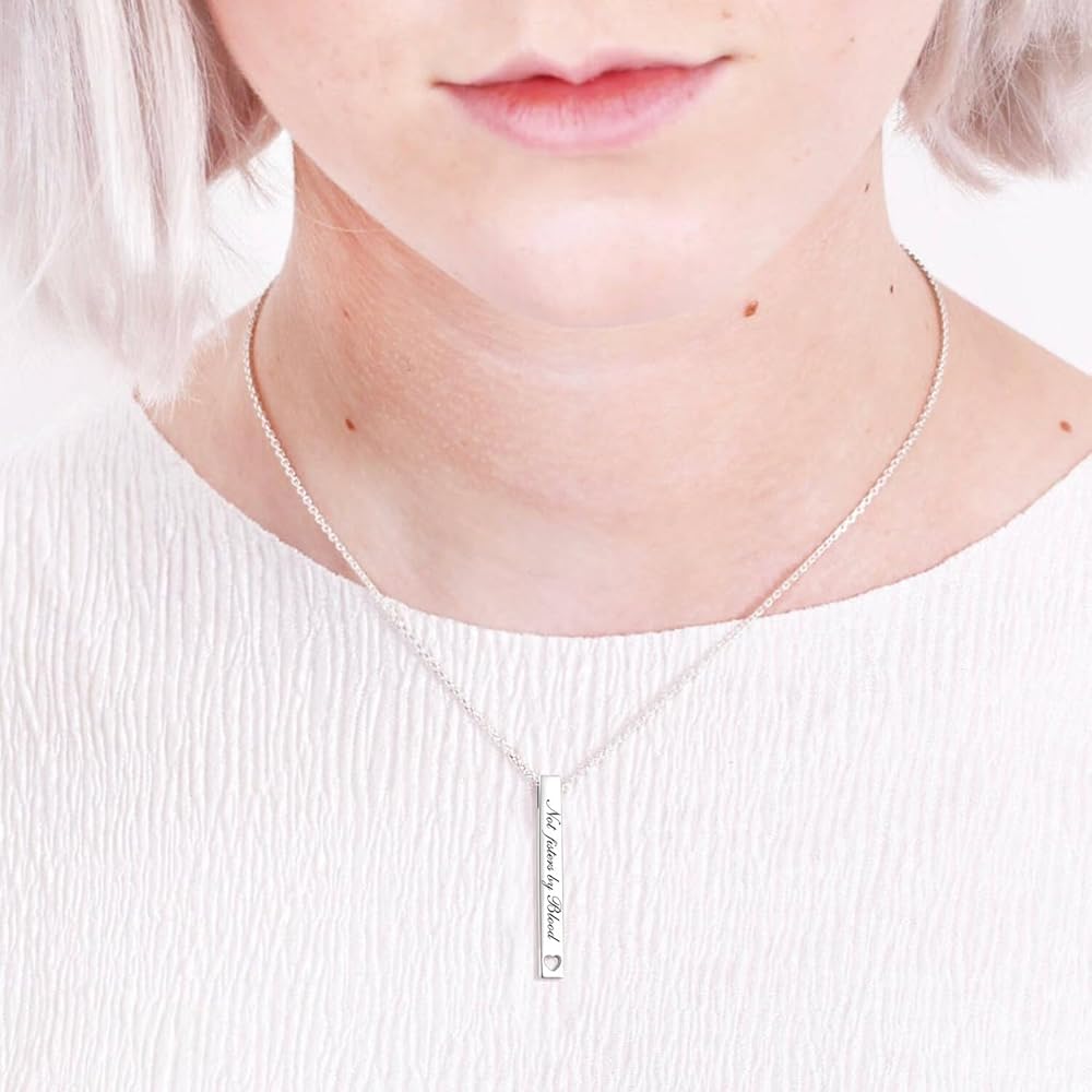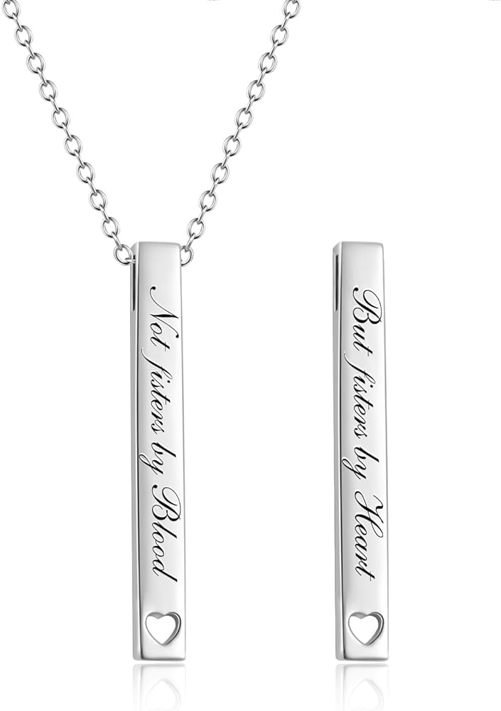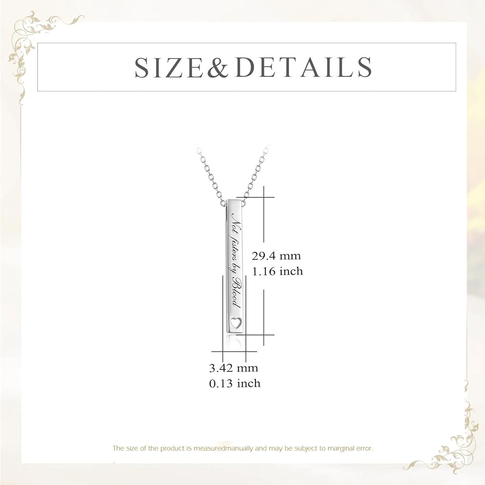 ❤【Eternal Friendship】 Vertical bar necklace with messages engraved, Not Sisters By Blood But Sisters By Heart. Simple dainty necklace but best and meaningful gift choice for BFF, female friends, sisters who is not related by blood.