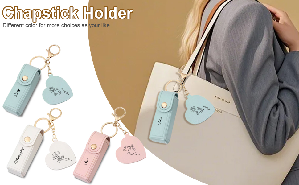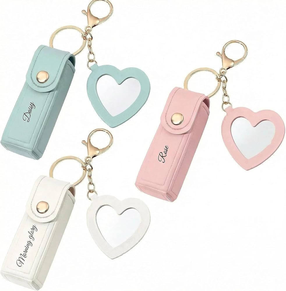Customized engraved lipstick case keychain with mirror - Personalized mini lipstick travel case, compact makeup storage bag, a gift for ladies and girls