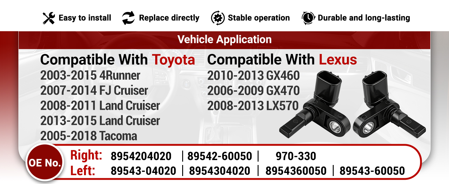 ✅ Universal Fitment Direct replacement for Toyota and Lexus vehicles including 2003-2015 4Runner, 2005-2018 Tacoma, Lexus LX570 2008-2013, and more. Perfectly matches OEM specifications for seamless ABS integration.