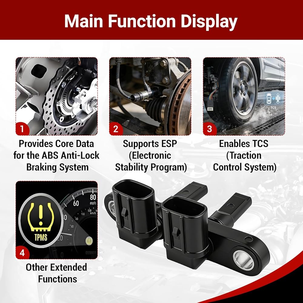 🛡️ All-Weather Reliability Built with rugged, waterproof materials to withstand harsh road conditions. Ensures accurate wheel speed detection for stable traction control and anti-lock braking performance.