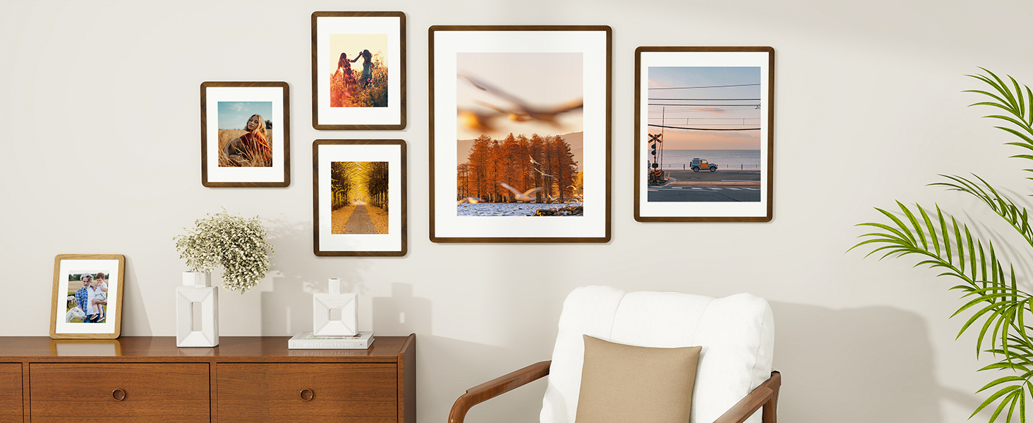 VERSATILE DISPLAY DESIGN:This 11x14 wood picture frame offers ultimate flexibility. Designed for both wall and tabletop use with included hardware and kickstand, it can be displayed horizontally or vertically. The included 8x10 mat adapts the frame for photos, making each solid wood frame a versatile centerpiece for photos, art, and memories in any space.
