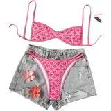 Catalpalev Women's Elegant Floral Print Tie-Front Low-Rise Bikini Two-Piece Swimsuit Beach Vacation Swimwear in Kuwait