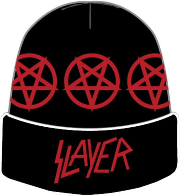 Channel the raw energy of thrash metal with the Slayer Pentagram Knit Beanie. Crafted for fans who live loud, this beanie features a bold pentagram design inspired by Slayer's iconic aesthetic. Made from soft, stretchable knit fabric, it offers warmth and comfort while making a fierce statement. Whether you're braving the cold or completing your concert-ready look, this beanie is a must-have for any true metalhead.