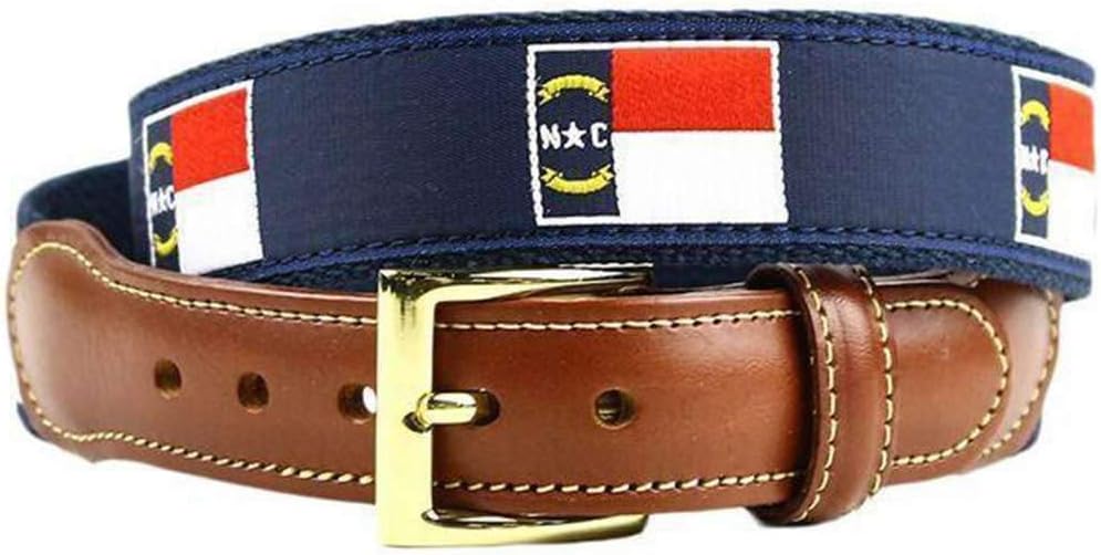 DISTINCTIVE FLAG STYLE: Our leather belt features the iconic north carolina flag tab, adding a bold and stylish accent to your wardrobe while reflecting regional pride and classic Country Club Prep aesthetics.