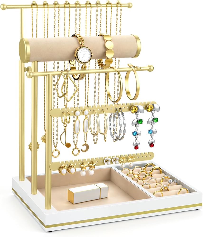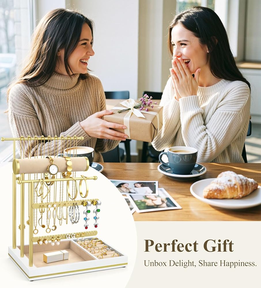 Easy Assembly & Perfect Gift: This stylish jewelry rack is effortless to assemble and features spacious, versatile storage in a modern design. It serves as a thoughtful and practical gift for loved ones, including your partner, daughter, grandmother, niece, friend, mother, wife, or sister, on occasions like Mother's Day, birthdays, Christmas, Thanksgiving, or Valentine's Day.