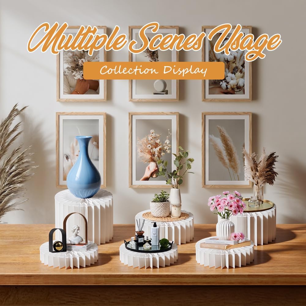 Endlessly Adaptable for Every Use: Extend their use far beyond the buffet table. These sleek white risers are seamlessly integrates into any environment. From family dinners to weddings, holiday parties, baby showers, corporate events, and outdoor celebrations. Use them as food risers for buffet, catering risers for food display, or dessert risers, showcase cakes, appetizers, and drinks, also perfect as display stands for jewelry, collectibles, crafts, perfumes, or cosmetics. Ideal for home, retail, or event use, looks neat and high-end
