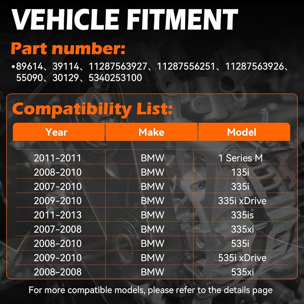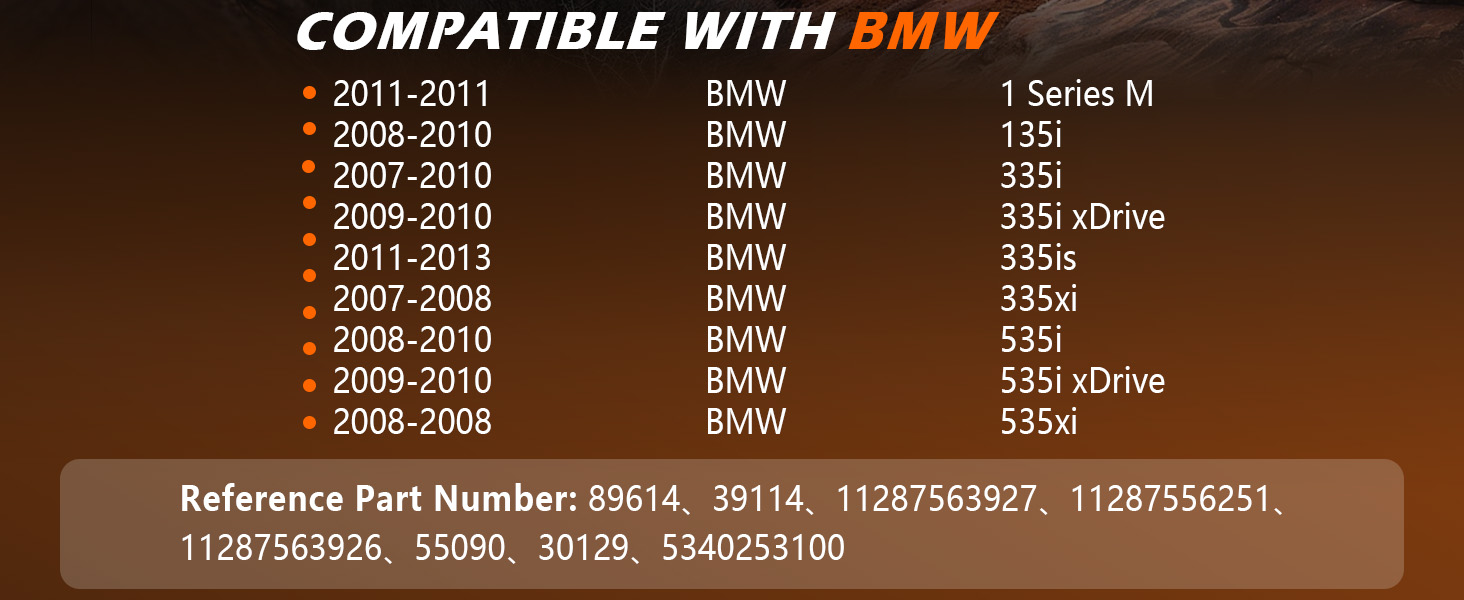 Compatibility & Fitment: Compatible for BMW: 2011-2011 1 Series M, 2008-2010 135i, 2007-2010 335i, 2009-2010 335i xDrive, 2011-2013 335is, 2007-2008 335xi, 2008-2010 535i, 2009-2010 535i xDrive, 2008-2008 535xi.